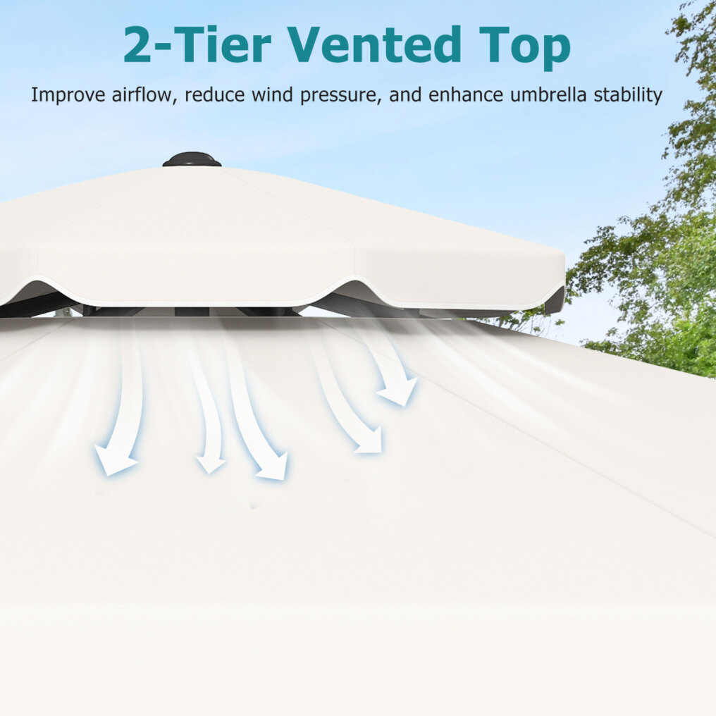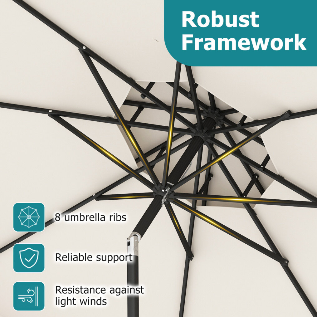 ● Breezy Stability Design: This 9 ft patio umbrella is built around a robust framework with 8 heavy-duty metal ribs that offer reliable support and added resistance against light winds. Plus, its 2-tier vented top improves airflow, reduces wind pressure, and enhances umbrella stability.