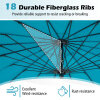 ● Upgraded Sturdy Structure: Supported by a solid framework of 18 fiberglass ribs, the patio umbrella provides excellent wind-resistance. Besides, the lightweight aluminum pole is characterized by its rust-resistance to ensure stability and lasting use.