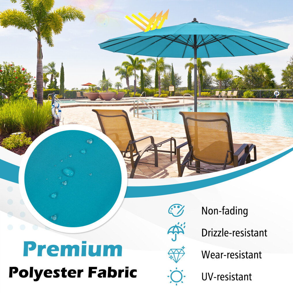 9 Feet Round Patio Umbrella with 18 Fiberglass Ribs-Turquoise