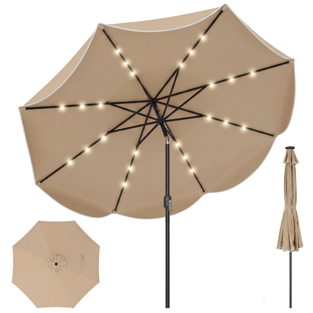 ● Radiant Solar-Powered Lighting: Equipped with 24 built-in LED lights powered by an energy-efficient solar panel, this patio umbrella requires no cords or electricity. Simply switch on the lights at night to create a warm, inviting atmosphere for outdoor gatherings, while enjoying comfortable shade during the day.