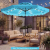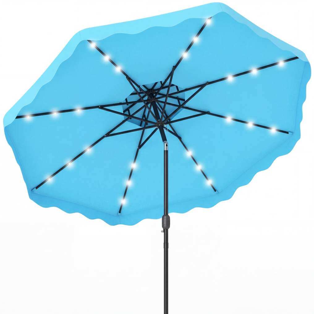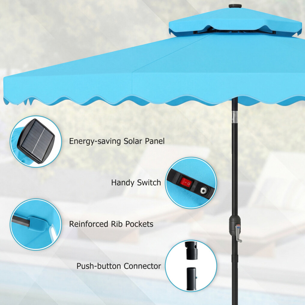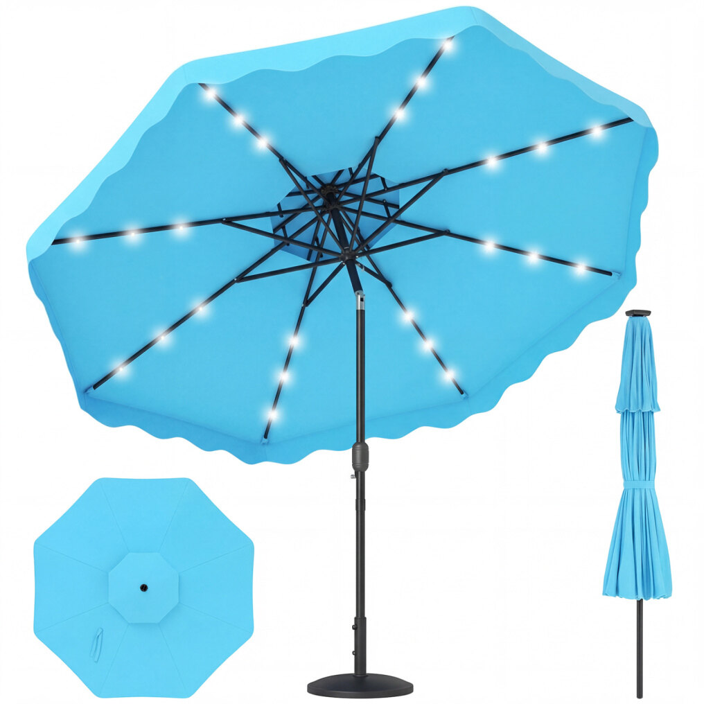● Sunset Light Moment: This 9 ft solar patio umbrella turns sunny afternoons into inviting evenings with a top-mounted, energy-saving solar panel. At dusk, 24 LED lights cast a bright yet cozy glow for dinners, chats, and lingering summer nights, while the handy switch makes the atmosphere easy to control.