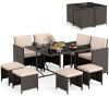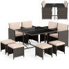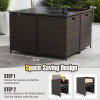 ● Space-Saving Storage: Keep your outdoor space tidy and organized with the smart design of the outdoor rattan dining set. The chair backrests can be folded down, and the ottomans can be stored neatly underneath the chairs, saving valuable patio or deck space when not in use. As needed, the chairs can be stored under the table.