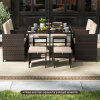 ● Premium Rattan & Wide Use: Crafted from well-woven, anti-fading, and sun-protective PE rattan, the patio dining set boasts an elegant design, making it an eye-catching addition to backyards, decks, gardens, or near poolsides. Please avoid rain exposure for prolonged service life.