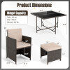● Multifunctional Ottoman: The multifunctional ottomans in the outdoor conversation set can serve multiple purposes, such as footstools, extra seats, or coffee tables. Size of Table: 44.5” x 43” x 29.5” (L x W x H). Size of Chair: 22.5” x 21.5” x 36” (L x W x H). Size of Ottoman: 16” x 16” x 14” (L x W x H).