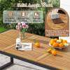 Exquisite Craftsmanship: This outdoor dining set features a robust metal table with a slatted acacia wood tabletop, blending the warmth of wood with the stability of metal that is both stylish and durable.