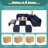 ● About Delivery: This 9-piece patio sectional sofa with fire pit table set will be shipped in 5 boxes (1 box for fire pit table and 4 boxes for patio PE rattan sofa set) that may not arrive on the same day. There are 2 bags of screws: 1 bag in the box of the fire pit table and another bag in the first box of patio PE rattan sofa set.