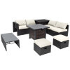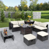 | material | pe rattan, metal, tempered glass, polyester, sponge |