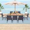 Exquisite Craftsmanship: This outdoor dining set features a robust metal table with a slatted acacia wood tabletop, blending the warmth of wood with the stability of metal that is both stylish and durable.