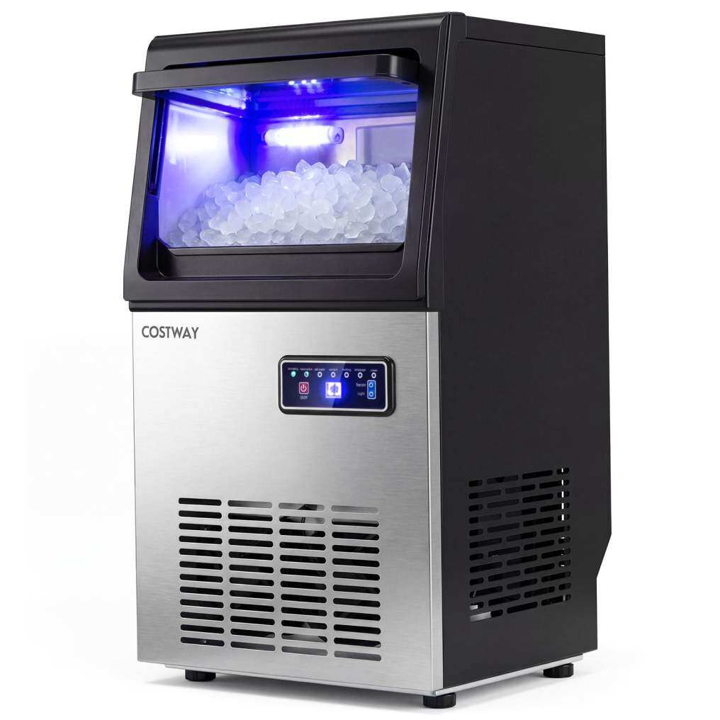 ● Intuitive Control Panel: Featuring a clear control panel, this freestanding ice maker is easy and intuitive to use. It offers a programmable timer from 1 to 23 hours, one-touch self-cleaning, automatic defrost, and built-in LED lighting to enhance your convenience.