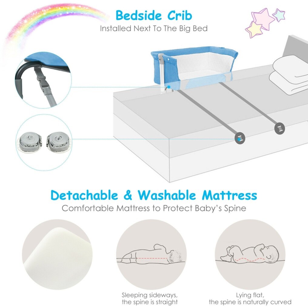 - Bedside crib is good for taking care of kids at night and improving sleep quality