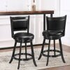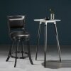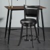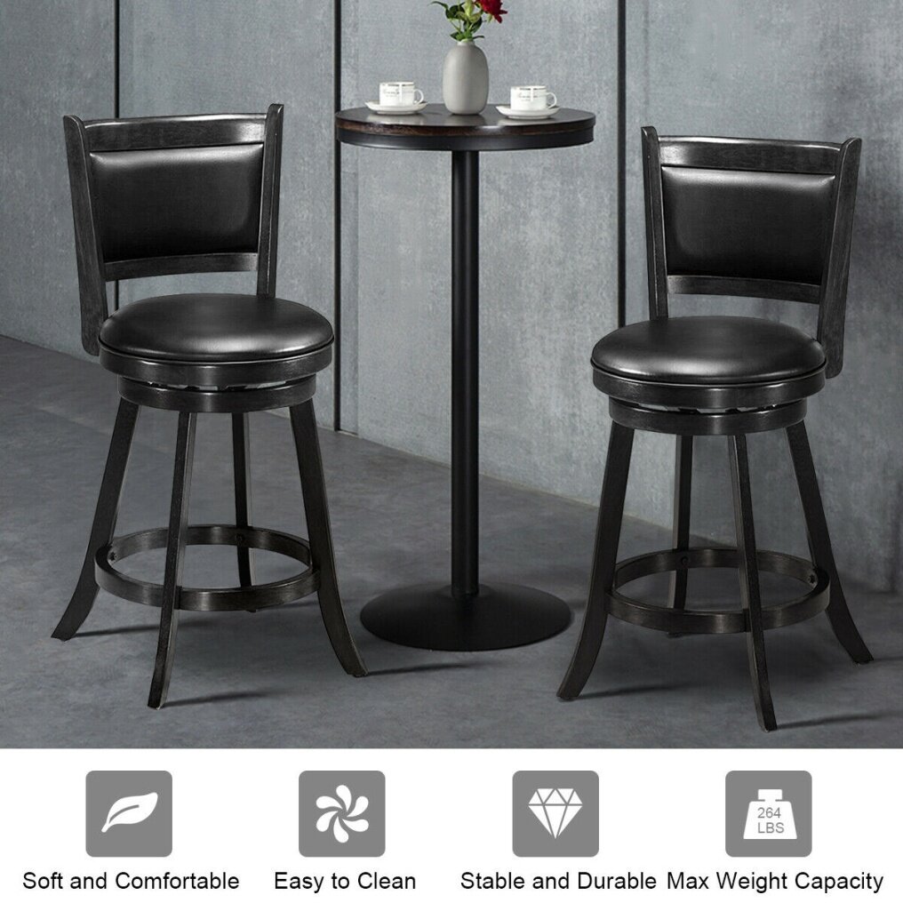 This is our brand new and beautiful bar stool which is taking the spotlight in any dining area. Rubber wood construction, built for every day use. The 360 degree swivel seat allows you to swing around effortlessly. And the black PVC cushion will easy to wipe clean. Flared legs and circular footrest provides comfort and stability. The transitional design will undoubtedly merge seamlessly with any style kitchen, basement, game room, or bar. Just need a little bit of assembly. 2 in 1 set at great price. Don' t hesitate to put them in your cart!