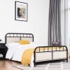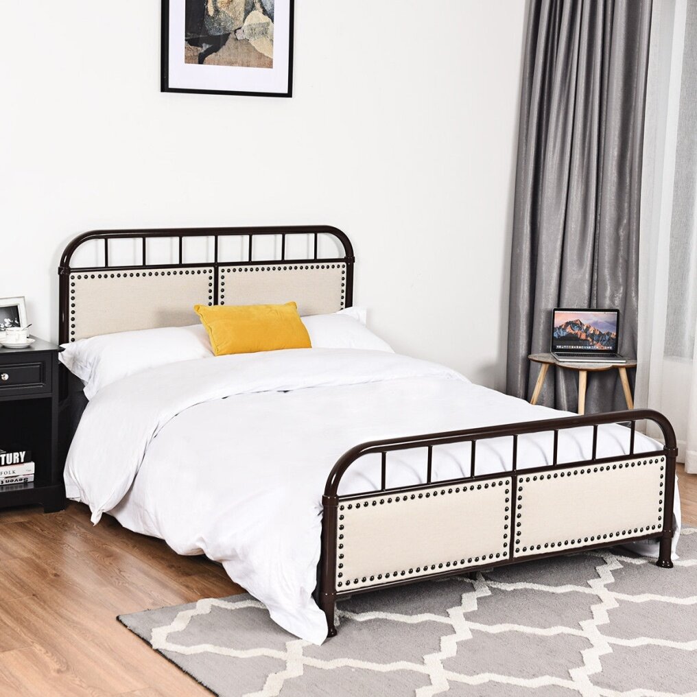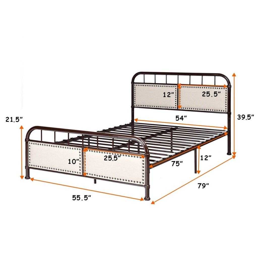 The metal construction with metal slats and steel legs including extra side legs which can hold up to 400 lbs. 12 inches of clearance under the frame is great for plenty of under bed storage space. The headboard and footboard with beige soft sponge boards design ilooks beautiful. It is great for residence bedroom, dorm, school student room.