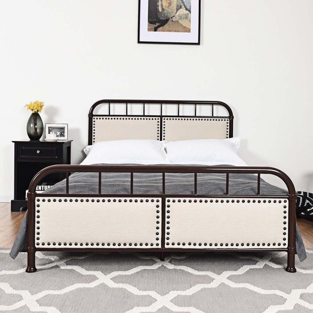 - The headboard and footboard with beige soft sponge boards for comfortable
