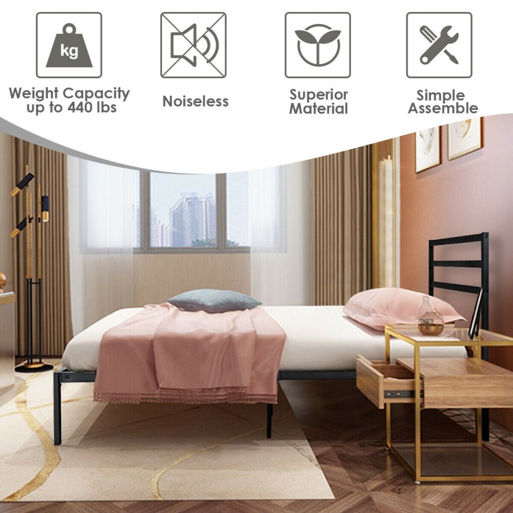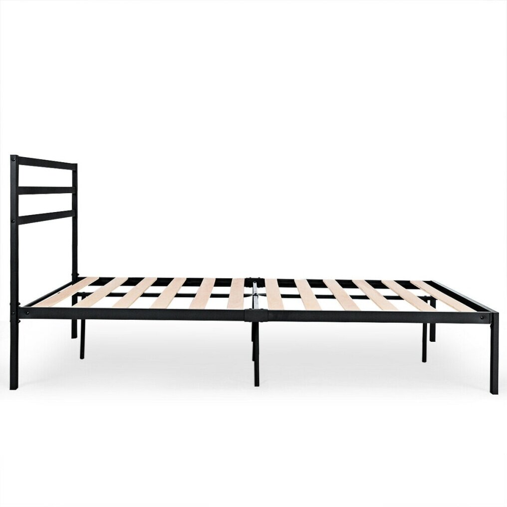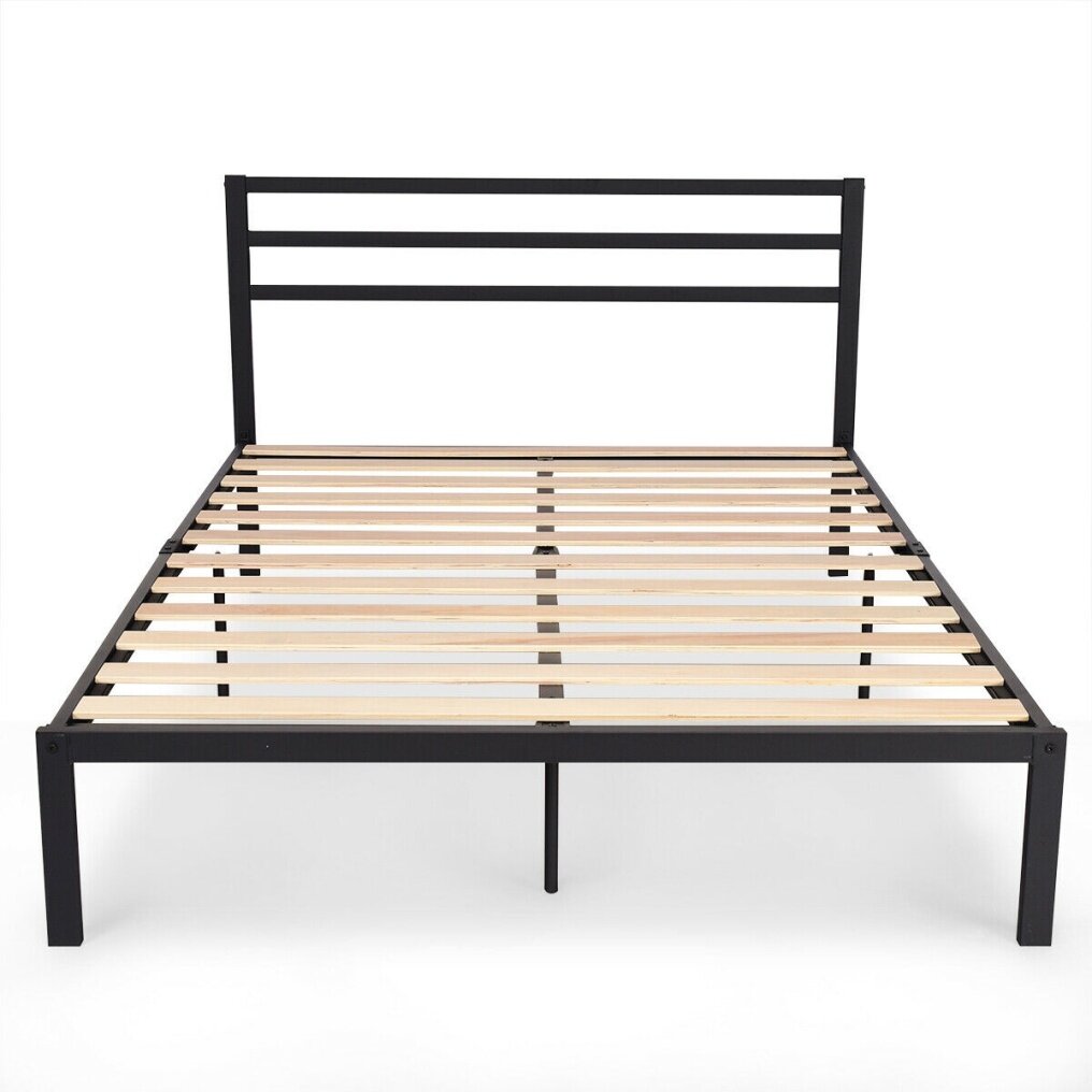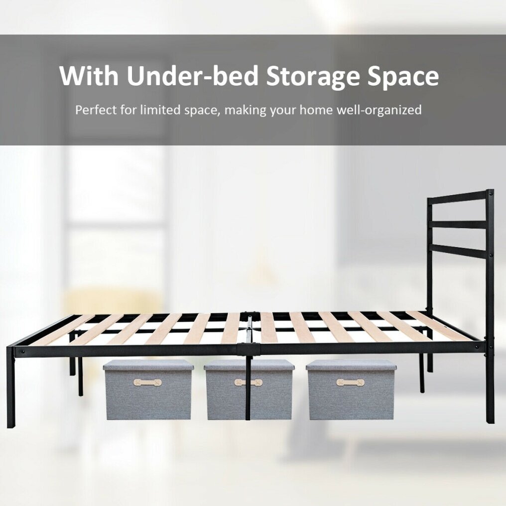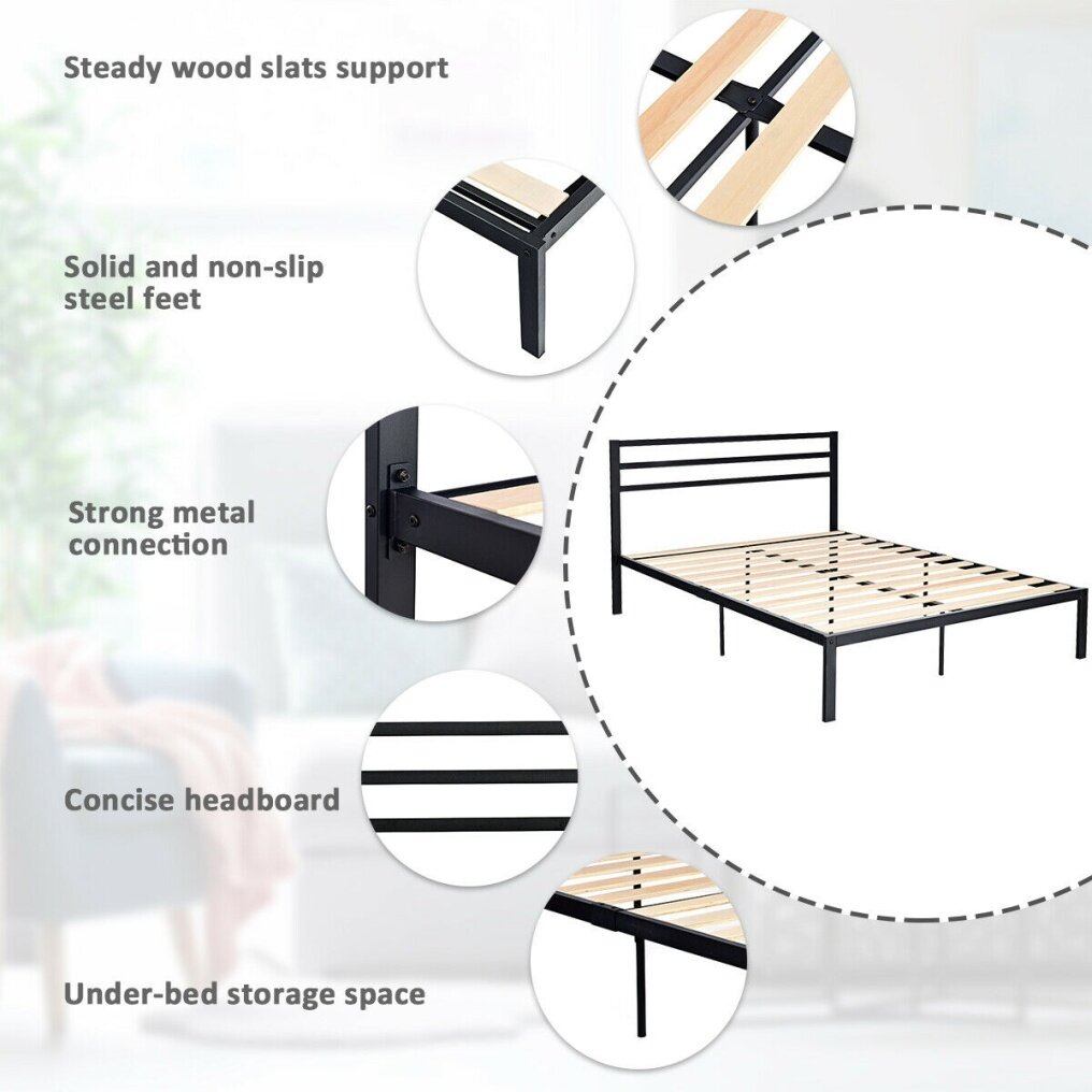 It features wooden slats. Padded non-slip tape is added to the steel frame for noise-free use and prevents your mattress from moving. The heavy duty platform bed with weight capacity up to 400 lbs, provide strong support for your memory foam, latex, or spring mattress. The 14 inches height with 12 inches of clearance under the frame will provide plenty of under bed storage space. This modern studio metal bed frame is great for residence bedroom, dorm, school kids student children room.
