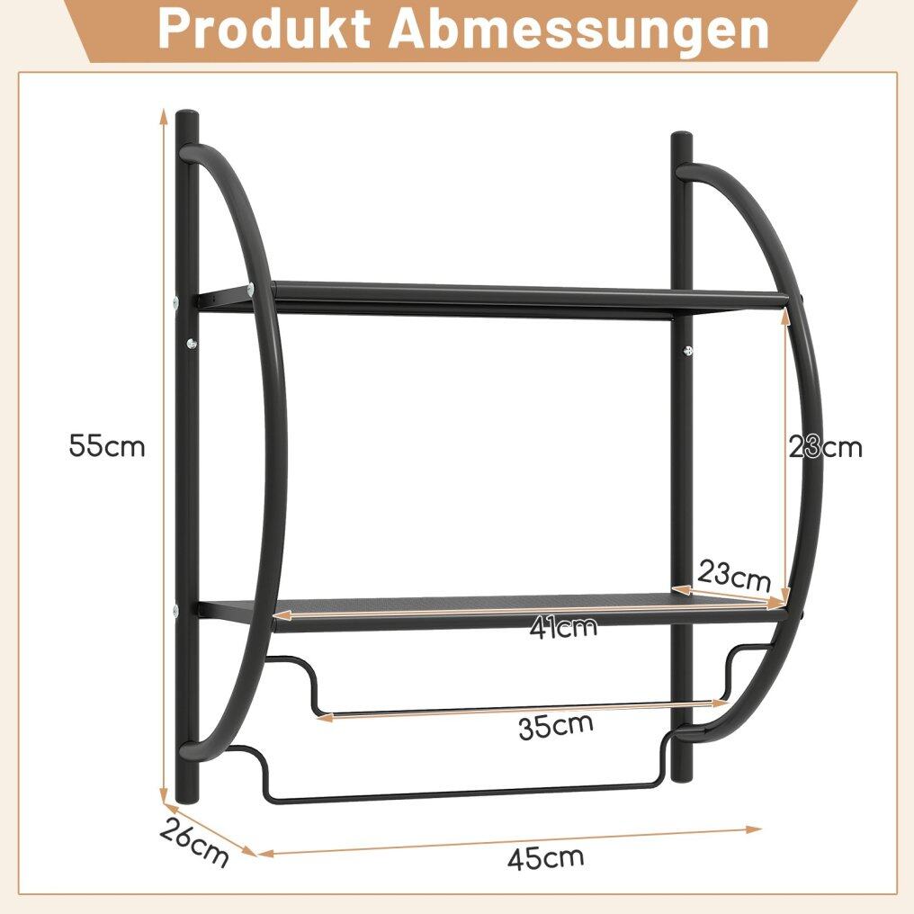 Meanwhile, this wall-mounted rack adds a modern feeling to your bathroom. Featuring chrome-plated iron, it is durable, rugged and anti-corrosion. The wall-mounted design maximizes the space of your bathroom. This holder features 2 tier plates and 2 towel rails, offering large storage space.