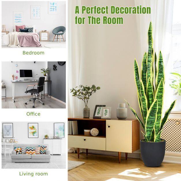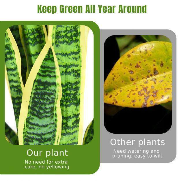 No assembly required: This faux snakeplant can be used at any time without additional installation steps, you just need to adjust the range of leaves to get a vivid and realistic looking. High end simulated plants will bring you a relaxed and happy life experience.