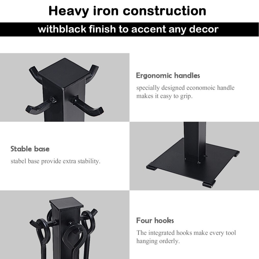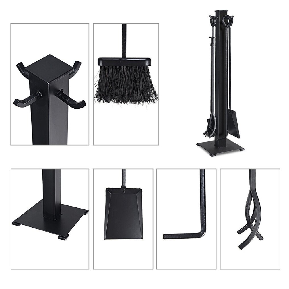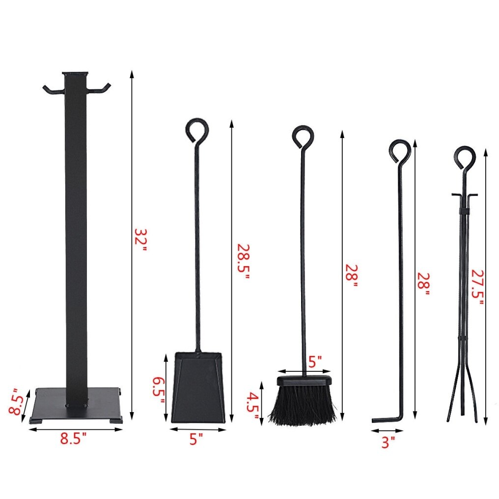 Constructed from steel, the toolset includes a base, a tong, a fireplace poker, a shovel and a brush for all your fire tending needs. This tool set is processed with spray-painting technology, which has rust-resistance and corrosion-resistance. When you received the tool set , you can use it directly. The fireplace accessory is designed to be sturdy and easy to use.