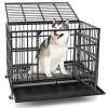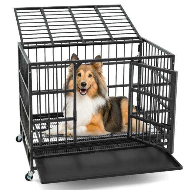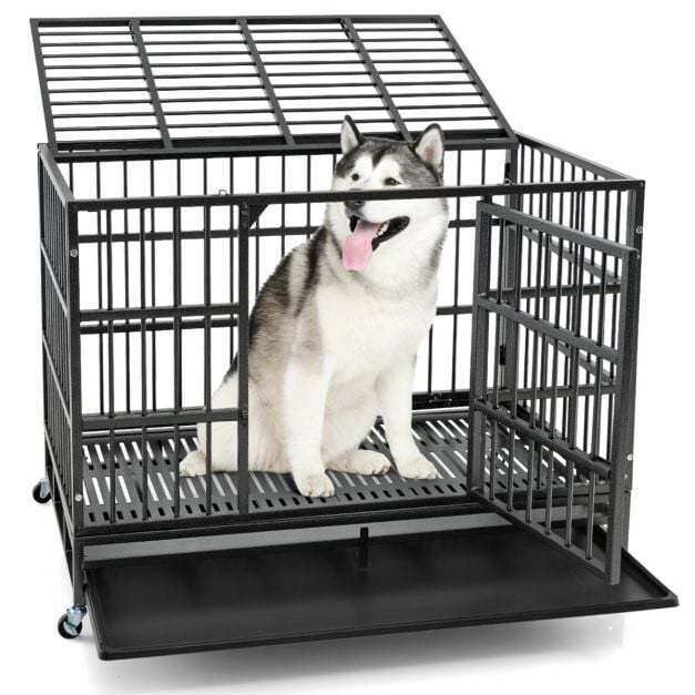 This large dog crate features a double-door design for easy access and interaction, complemented by 4 sturdy locks to prevent escapes. The dog kennel includes a removable tray that is easy to clean and supported by a metal flap to prevent accidentally slipping out. Moreover, made of premium deform-resistant metal, the indestructible kennel is a secure choice for your pet. Importantly, the dog cage is designed with 4 universal wheels for mobility and 2 lockable wheels to keep it in place when needed. You can fold the dog kennel for easy storage as needed, or quickly install it to use. If you are looking for such a product, do not hesitate to buy it!