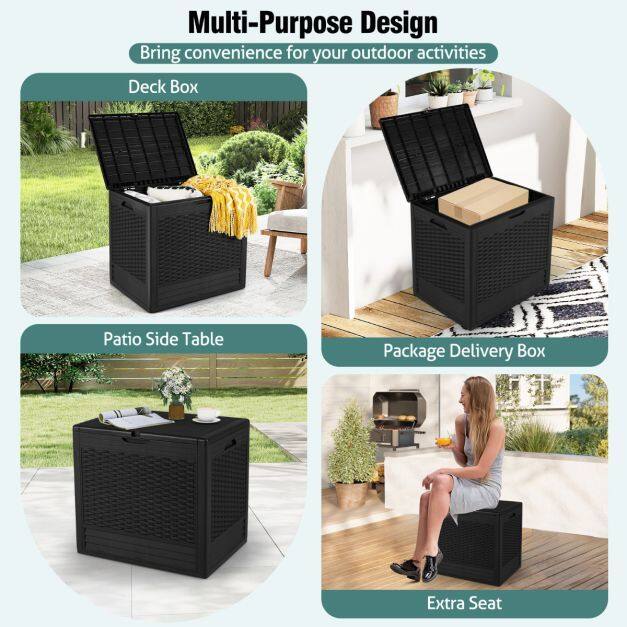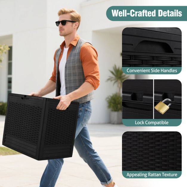 Attractive Rattan Finish: Enhanced with an elegant rattan pattern, this storage box not only offers a practical solution but also enhances the decor of your outdoor space. It complements perfectly with various styles of patio furniture.