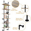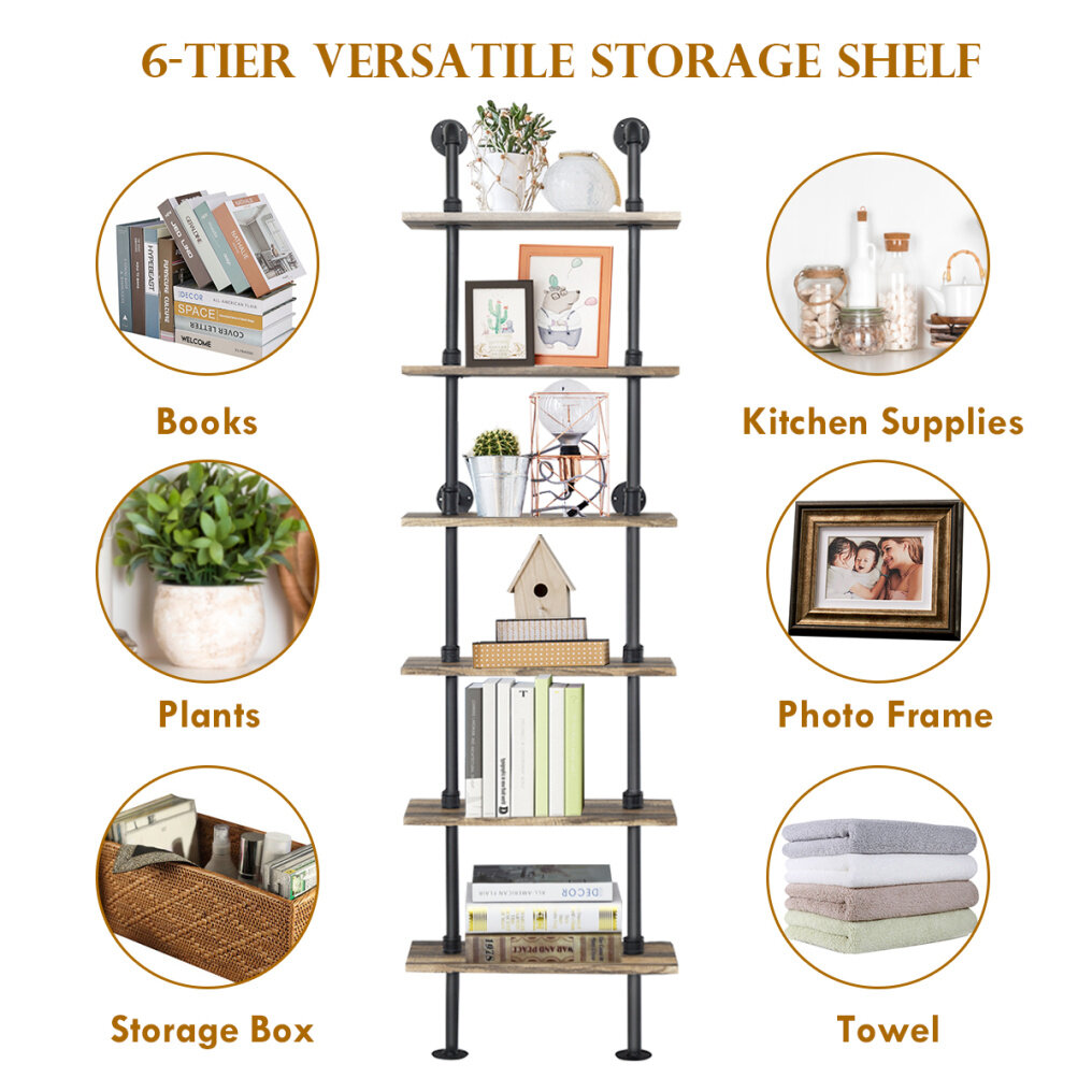 It doesn't take up too much space because it can be hung on the wall and can help you organize your room. You can put it in the living room, kitchen, bathroom, bedroom, coffee shop, etc. You can store books, photos, potted plants, toiletries, etc. Moreover, its mdf is very thick and has a good load-bearing capacity. The metal round tube is fixed on the wall and has good stability and is not easy to fall off. In addition, the assembly is also very easy.