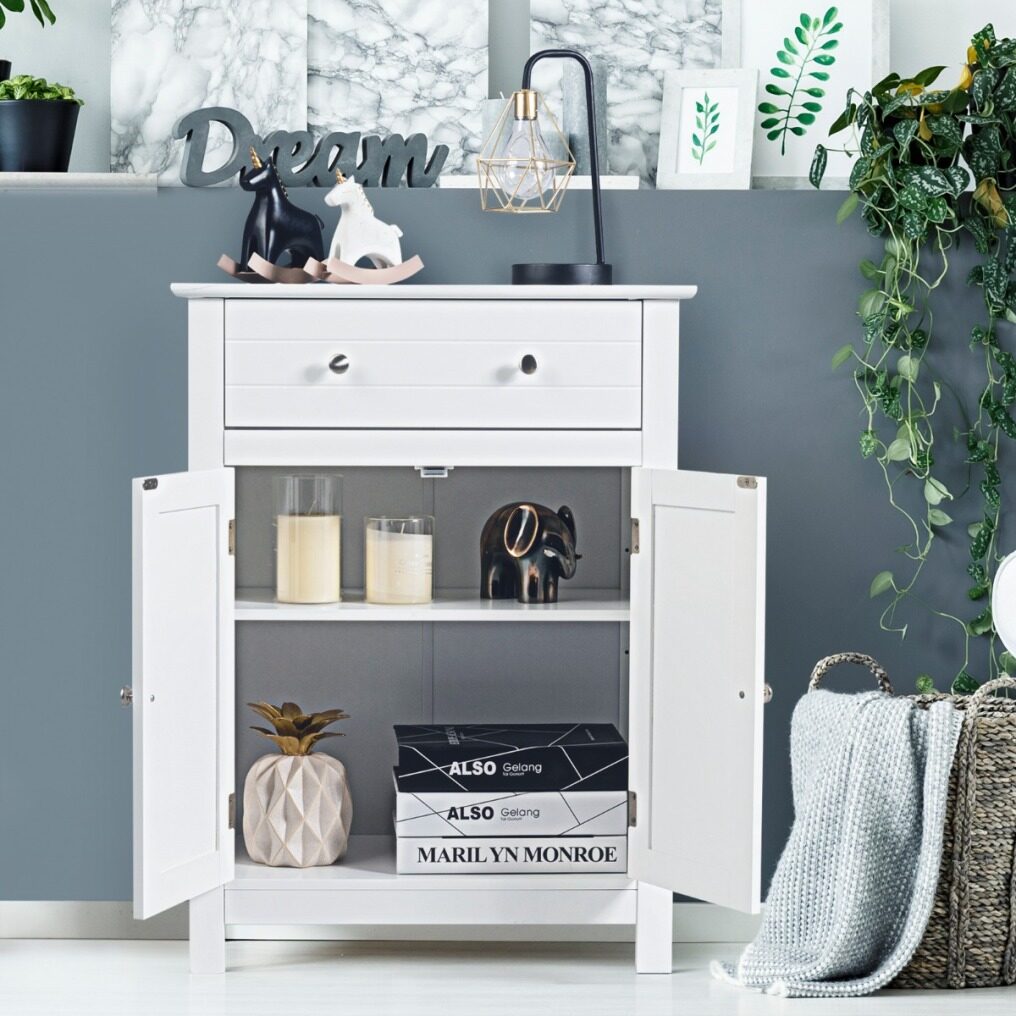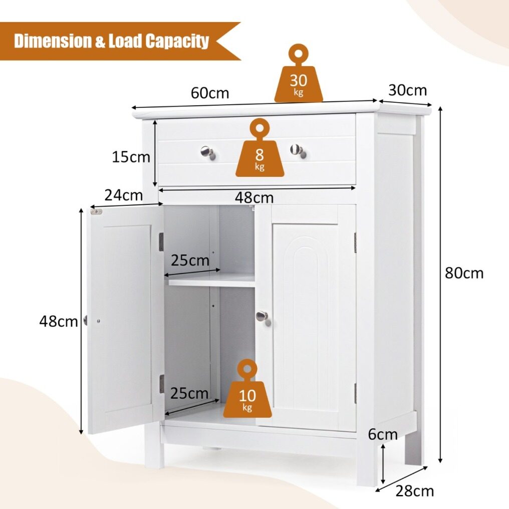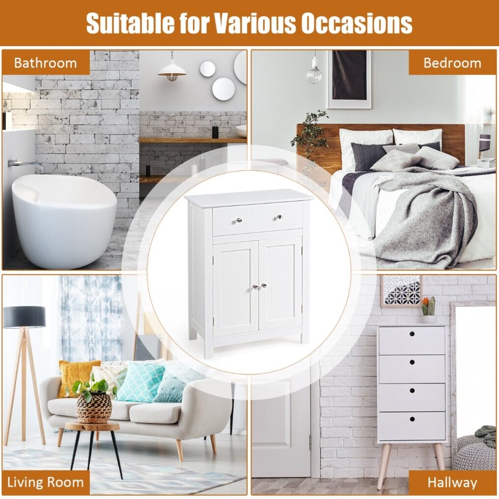 Flexible & Large Storage Space: The bathroom cabinet has a drawer and adjustable shelves, which provide you with flexible storage space. The drawer will protect personal items from curious eyes. You can also place photo albums, oils, potted plants, etc on the top.
