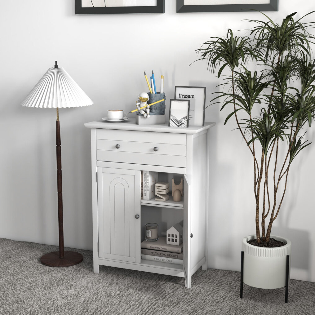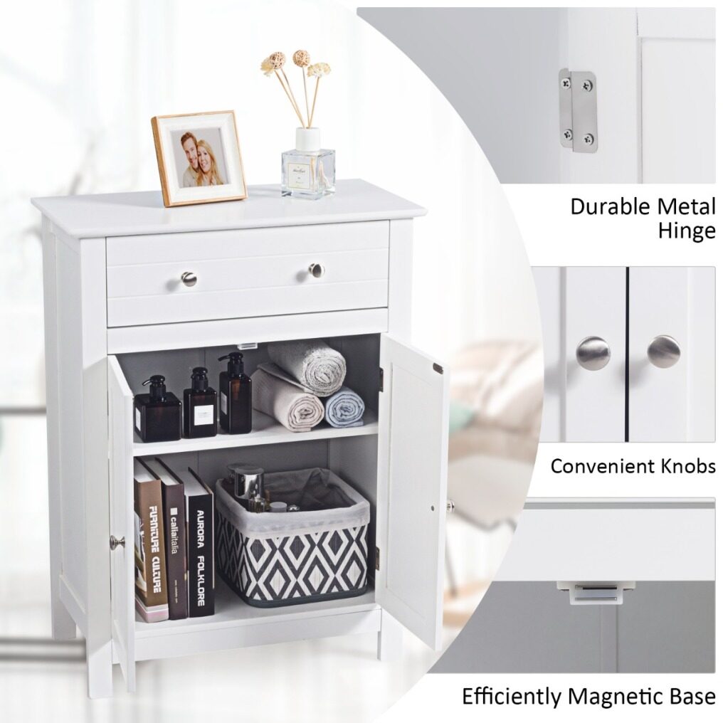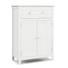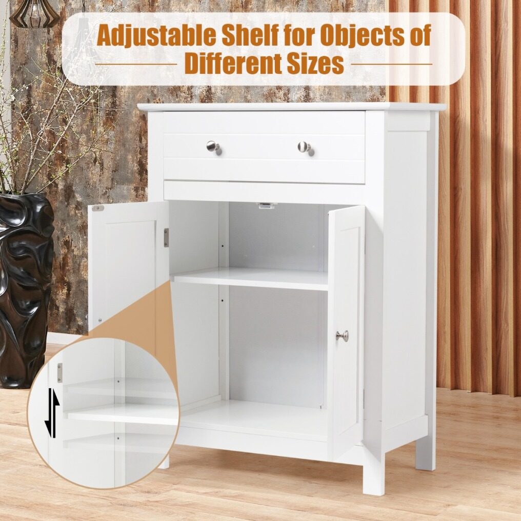 Flexible & Large Storage Space: The bathroom cabinet has a drawer and adjustable shelves, which provide you with flexible storage space. The drawer will protect personal items from curious eyes. You can also place photo albums, oils, potted plants, etc on the top.