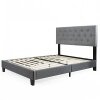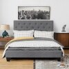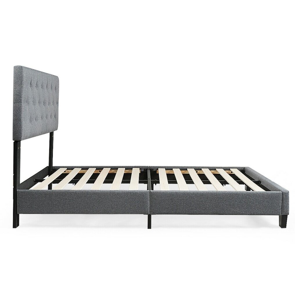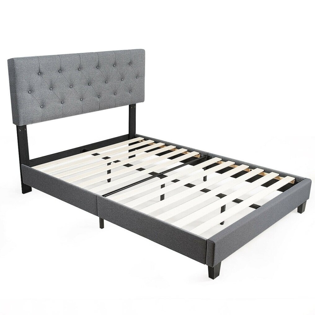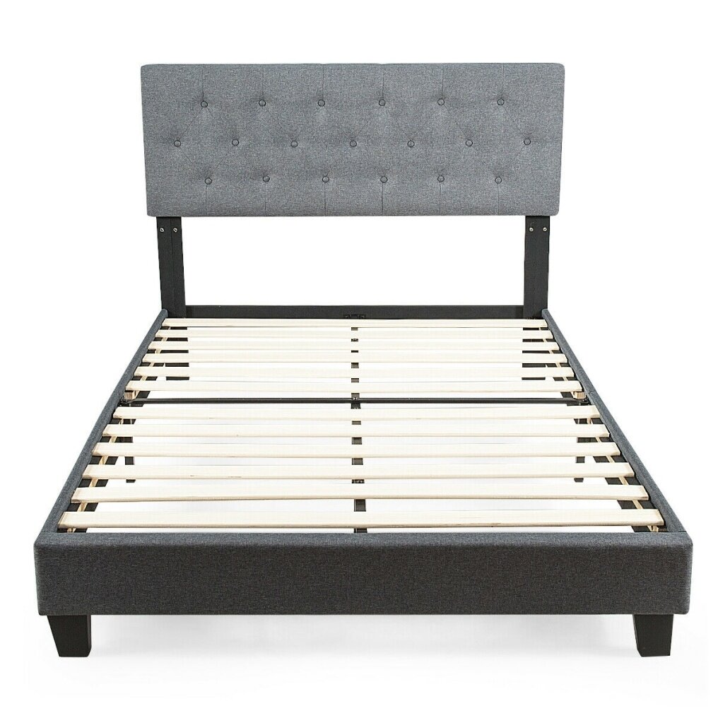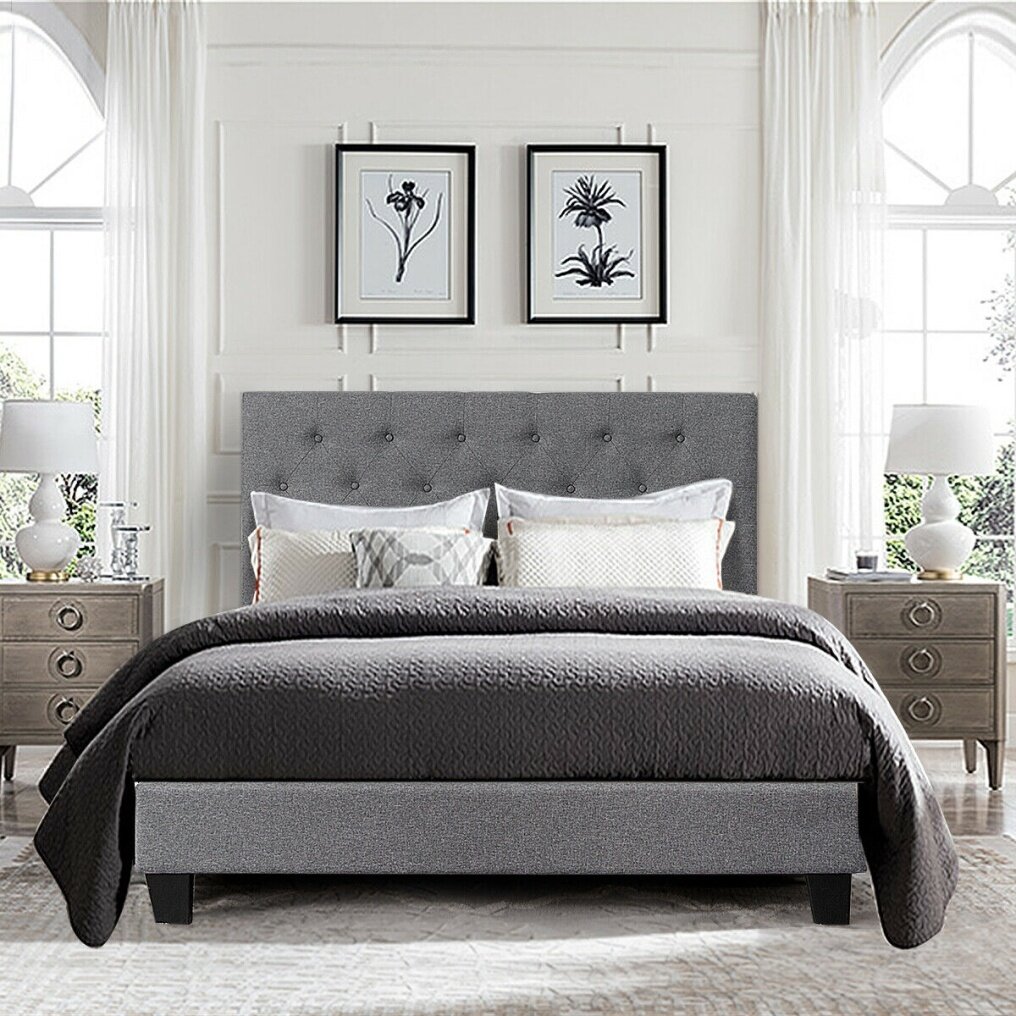 Featuring an rectangle tufted headboard with soft coves, this bed is a beautiful and comfortable combination. And the unique and concise headboard and low -profit footboard make it be the perfect centerpiece for the bedroom However, it not only pleasing the eye but comforting your body. Adopts durable steel and thick wooden slats, this bed is durable and has enough weight capacity for you. Besides, padded side rails are not only protect you but increase warm touch.