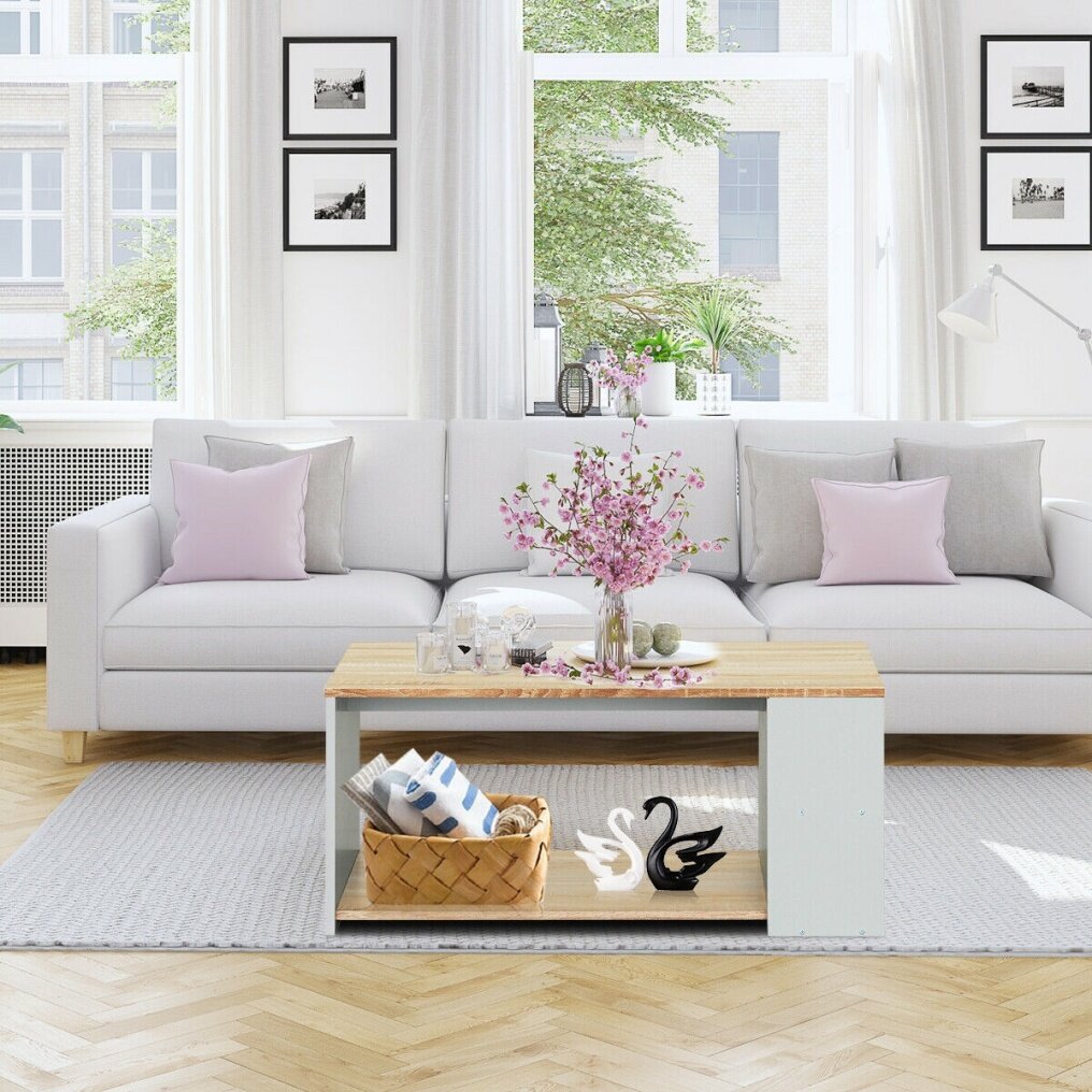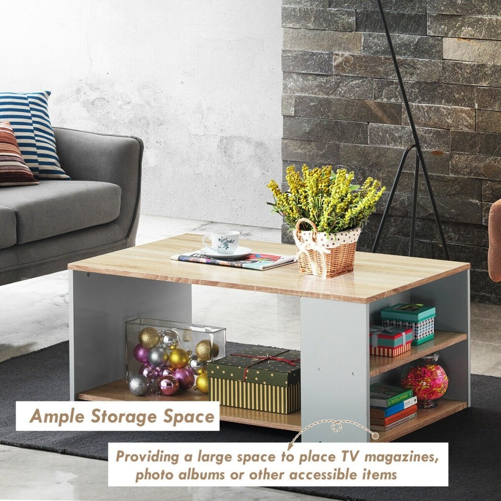 The coffee table is made of P2 certified MDF and particle board, creating a smooth surface and harmless piece of furniture to your home. And its material and four-point bearing support assure its stable and solid construction, allowing you to hold your snacks, remotes, magazines and so on with its large loading capacity. Plus, with its elegant and simple modern design and spacious storage space, the coffee table is your best choice aiming to give you a better visual experience.