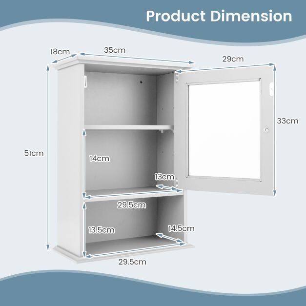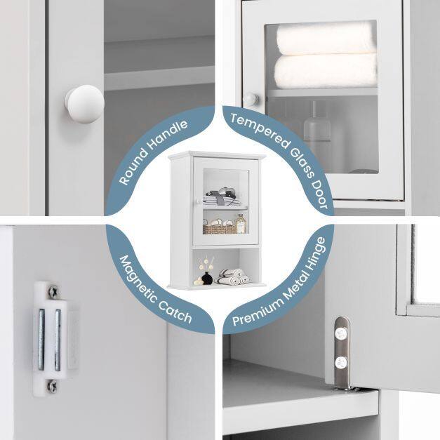 Selected and Durable Material: Made of high quality MDF and shatter-proof tempered glass door, this wall mounted bathroom cabinet ensures great stability and long-lasting use. Besides, the painted surface makes for better durability and lower maintenance.