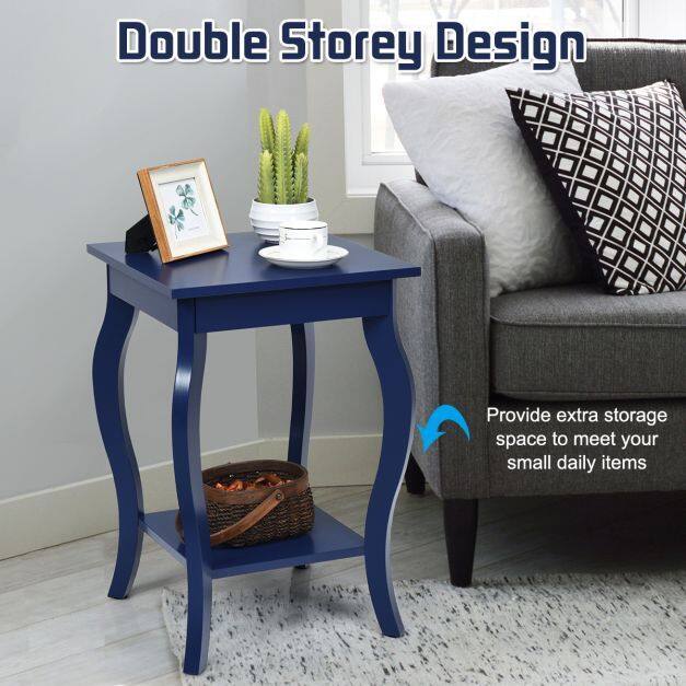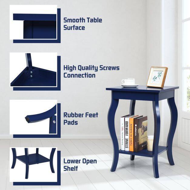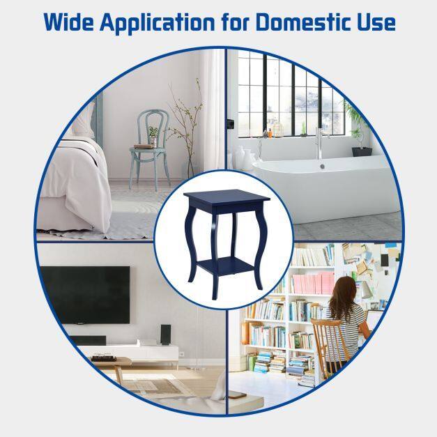 The end table is the perfect solution to increase storage space for your home. These modern square corner tables come with double-tier shelves, which can provide ample storage space in order to keep the room in order. The sturdy hardware is dedicated to increasing the stability of these side storage shelves. In addition, each night stand features a smooth desktop for easy daily maintenance. The foot pads at the bottom play an important role in protecting the floor when the accent table moves. The perfect size makes it very suitable for many occasions such as office, living room and bedroom.