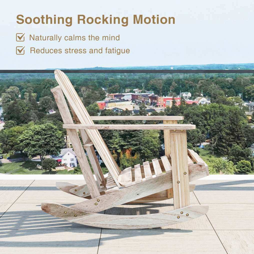 ● Natural Charm Outdoors: Boasting a rustic appearance with natural aesthetic, this rocking chair fits beautifully in backyard, garden, poolside and so on. Note: Please treat the wood surface with maintenance oil (not included) regularly. Please avoid rain exposure for prolonged service life.