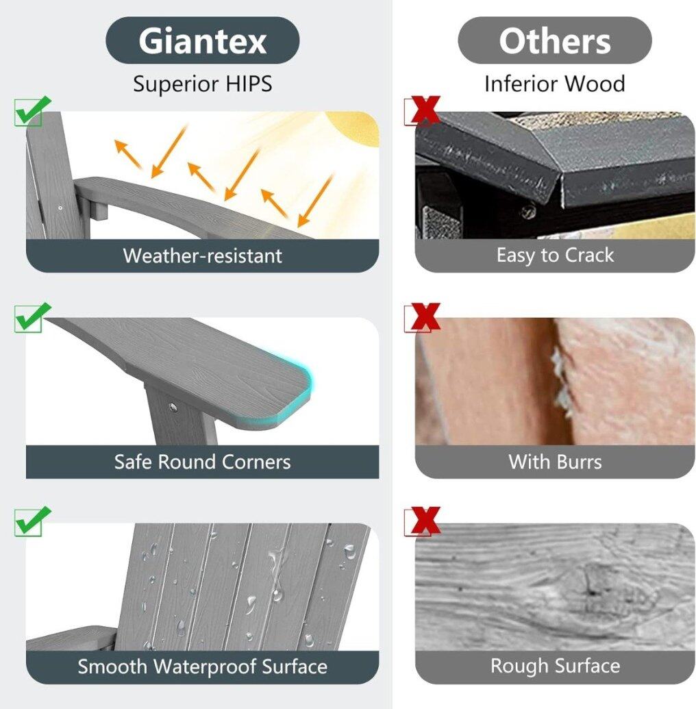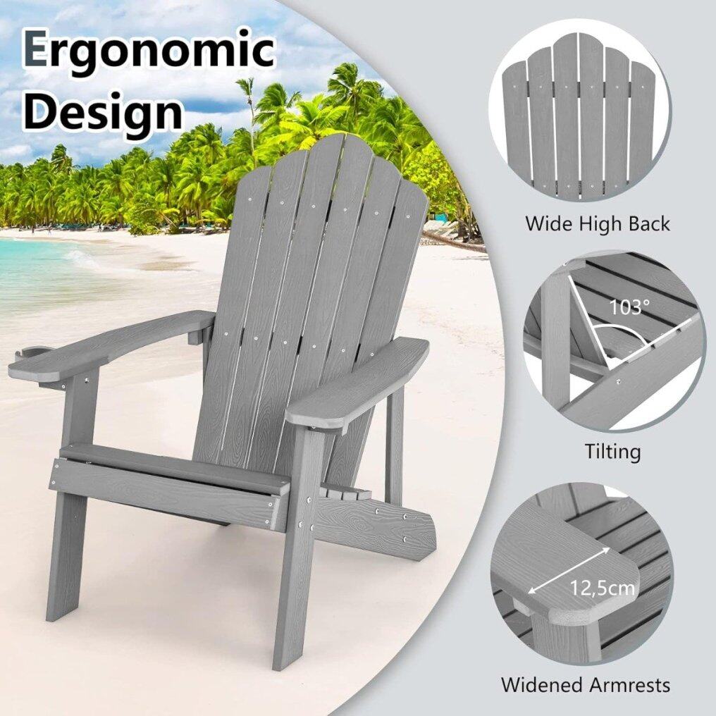 Weather-resistant material: Made from high-quality HIPS material, it's smooth and won't crack, fade, or peel. This durable Adirondack chair is particularly easy to care for and will reliably accompany you through many wonderful outdoor moments. The material is also waterproof and can withstand all weather conditions.