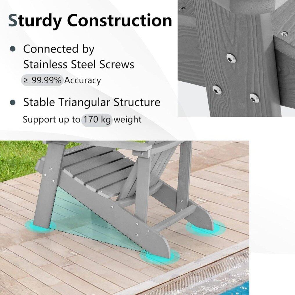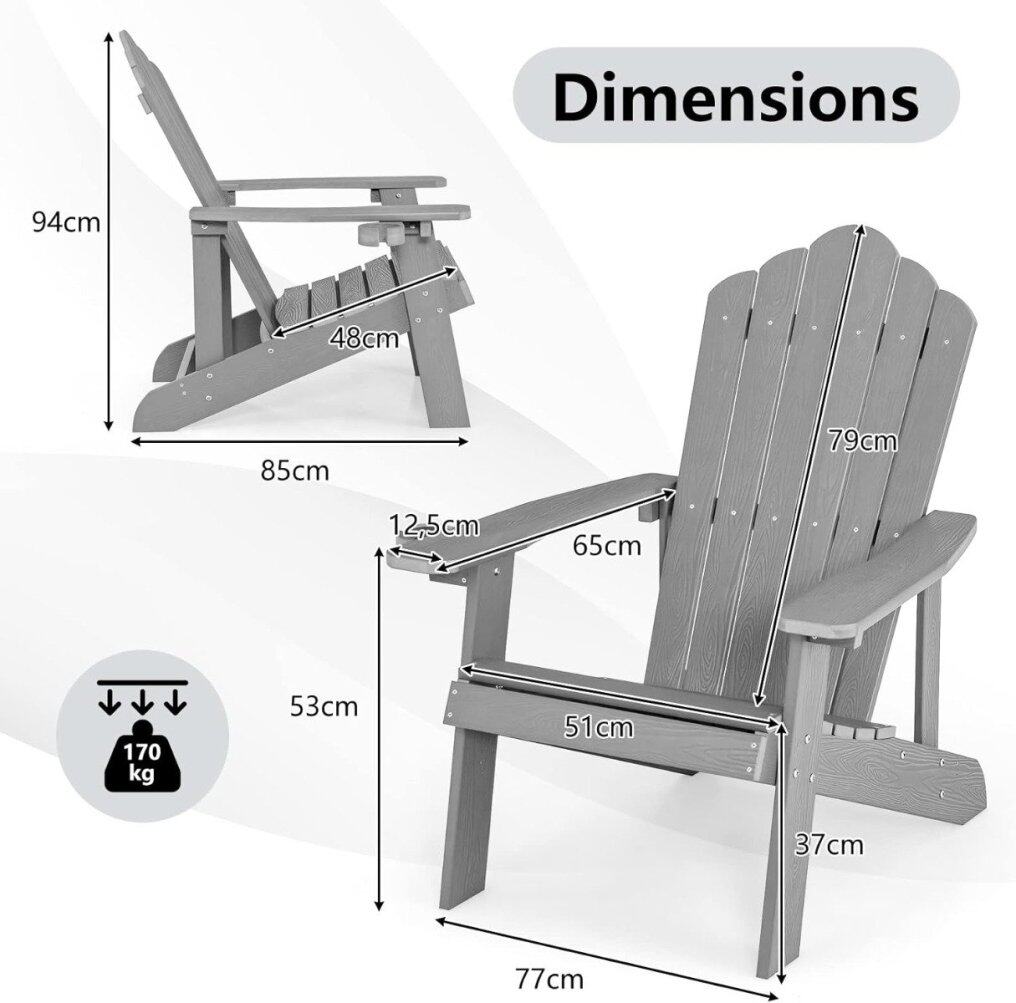 High stability & easy assembly: Several 304 stainless steel screws firmly connect the individual components and ensure a high load capacity of up to 170 kg. The Adirondack chair comes in 8 individual parts and can be easily assembled in about 15 minutes thanks to the detailed instructions.
