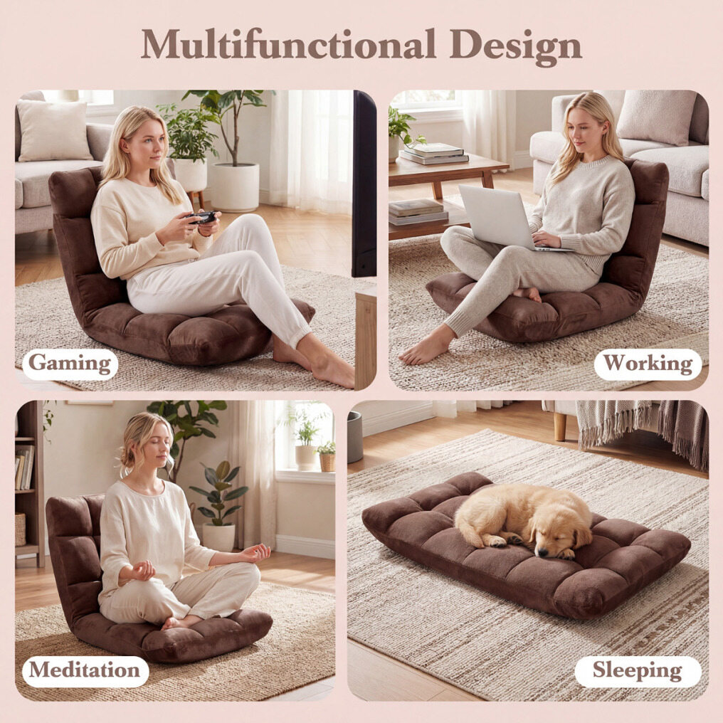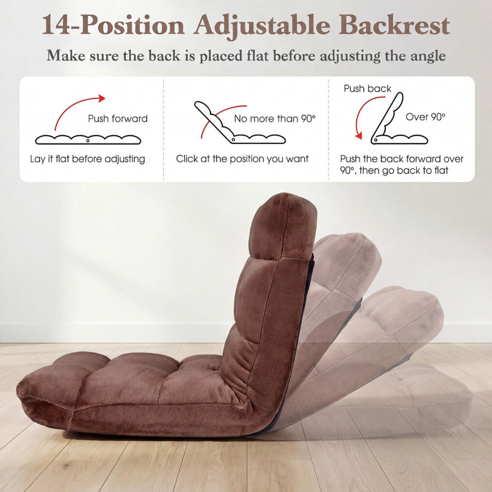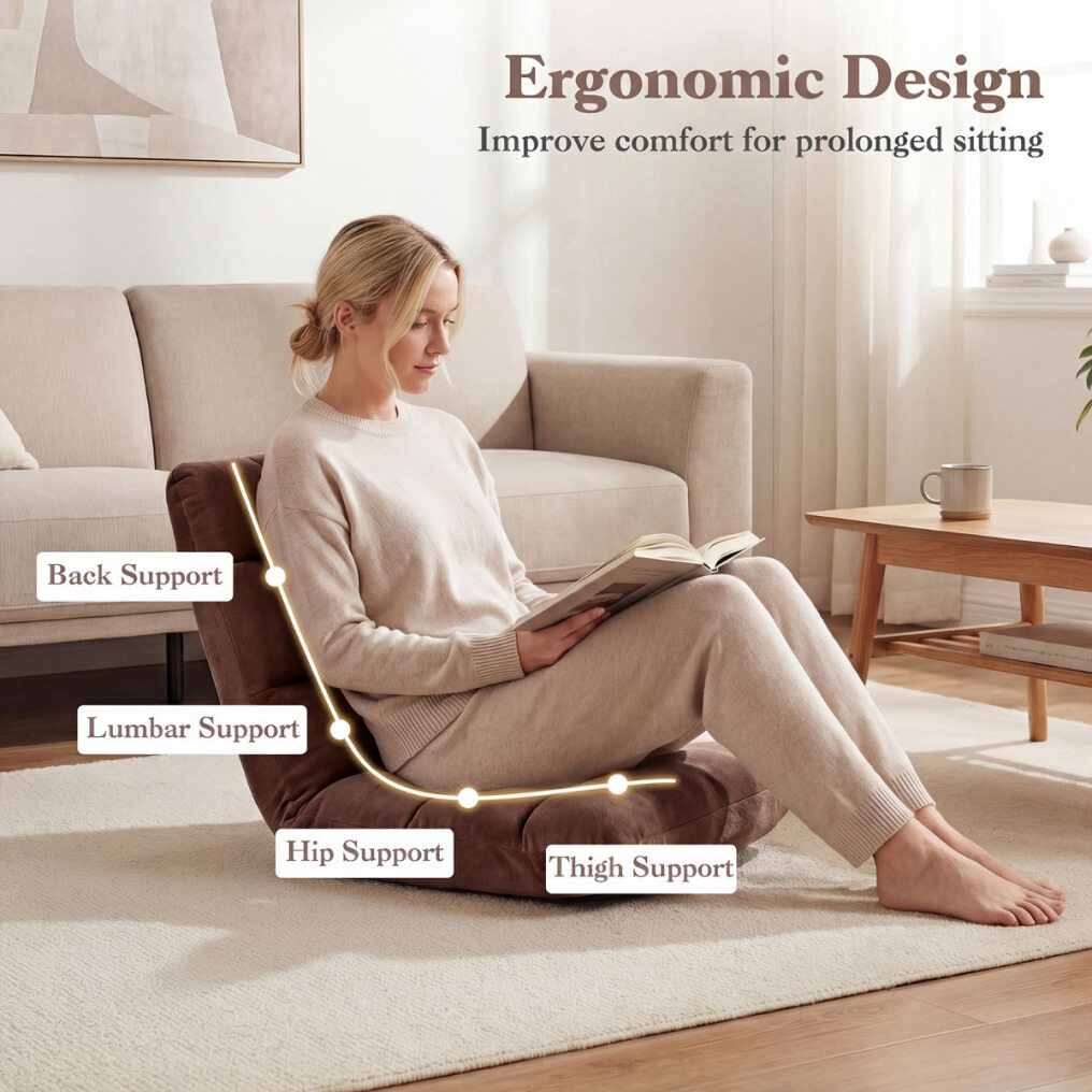 14-Level Back Support: Featuring a 14-position adjustable backrest, the floor sofa lets you choose a suitable angle for different activities. The ergonomic backrest conforms to your body, providing optimal back support to ease tiredness.