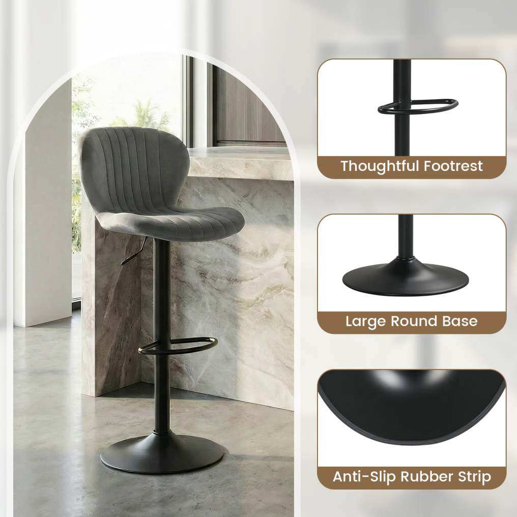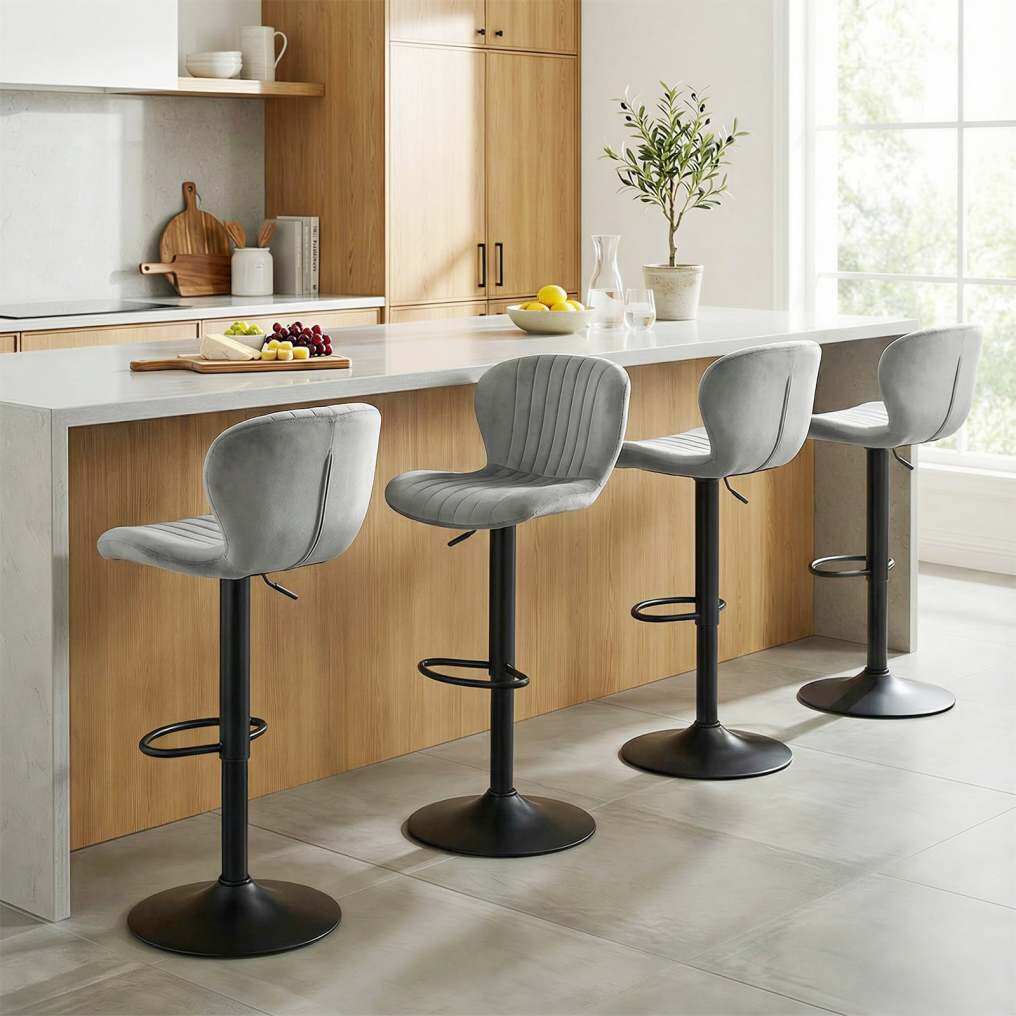 Adjustable Counter Height Chairs Set of 4 with Velvet Upholstered Backrests-Gray