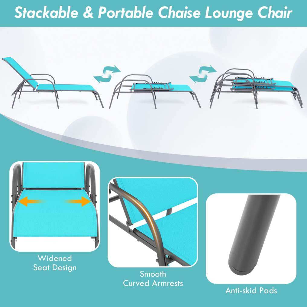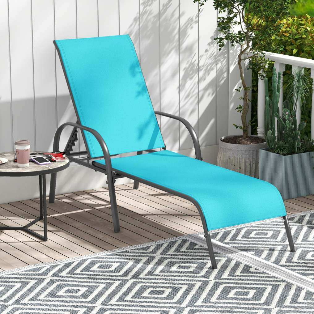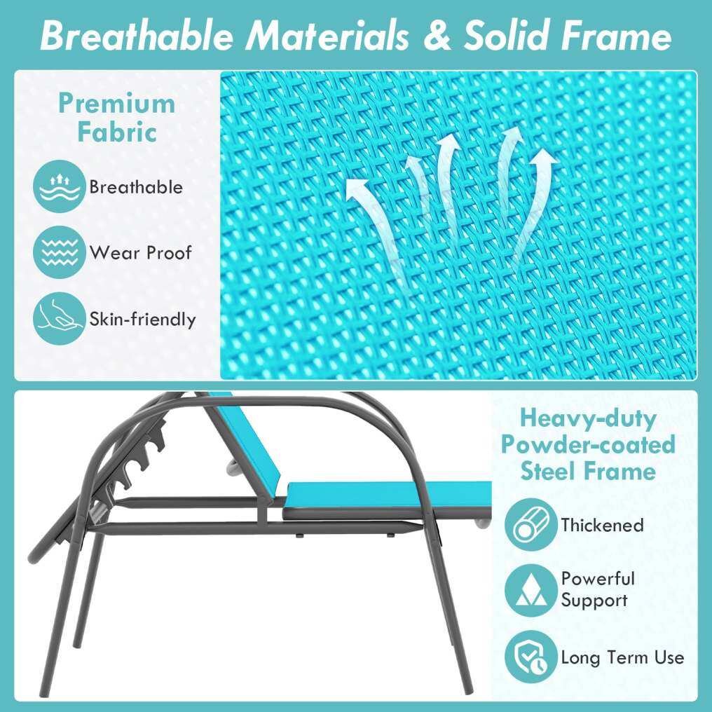 ● Adjustable Chair Back: The patio chaise lounge provides 5 adjustable backrest positions to meet your needs for different reclining angles. Furthermore, the wide backrest and seat make you feel more comfortable.