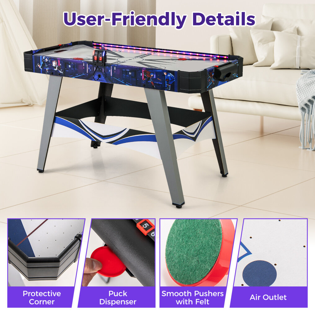 LED Hockey Table for Various Settings: Light up your hockey game nights with the innovative LED lighting system. The striking red and blue light strip adds a dynamic and colorful element to your gameplay, while the flashing goal lights increase excitement with every score. Whether you're playing in the game room, living room, office, or at a party this LED hockey table will brings a whole new level of fun for various settings.
