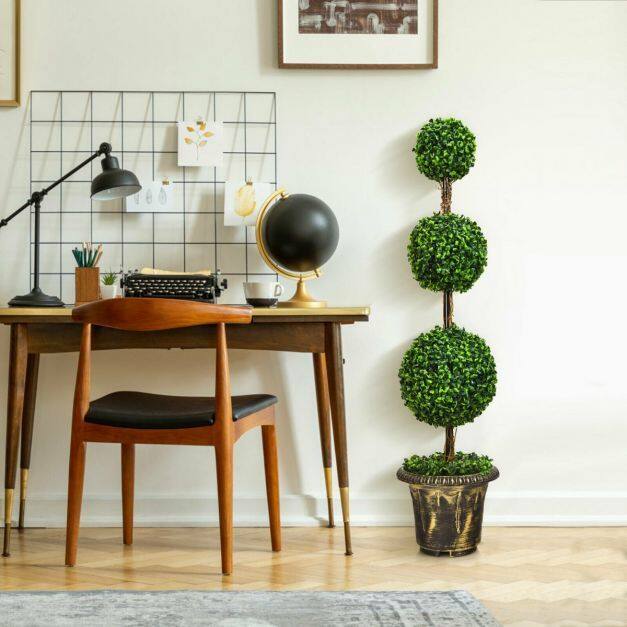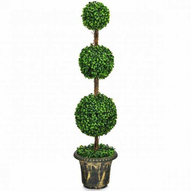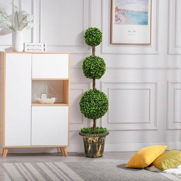 The 120cm triple-ball artificial tree, with its vibrant green leaves and solid wood rattan, is so lifelike. You can't even tell it apart from the real thing. In order to provide fresh and green views throughout the year, the artificial tree uses quality PE leaves. Dense foliage and vivid colors convey a touch of green and nature, while solid wood vines add a touch of nature. There is no need to worry about its quality. PE leaves are odourless and non-toxic to use. To make it more durable, the decorative pot is filled with cement to ensure overall stability and avoid slipping. In addition, it is the perfect indoor and outdoor decoration for homes, offices, balconies, gardens, etc. UV and waterproof design, you can rest assured that it is freely placed outdoors. This artificial tree is exactly what you want.