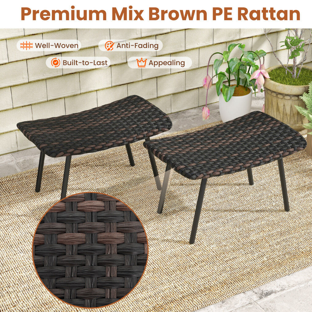 ● PE Rattan Weaving: Featuring selected mixed brown PE rattan, the versatile footrest seats set is wear-resistant, colorfast and has enduring quality. What's more, the PE wicker enhances both the aesthetic and structural integrity.