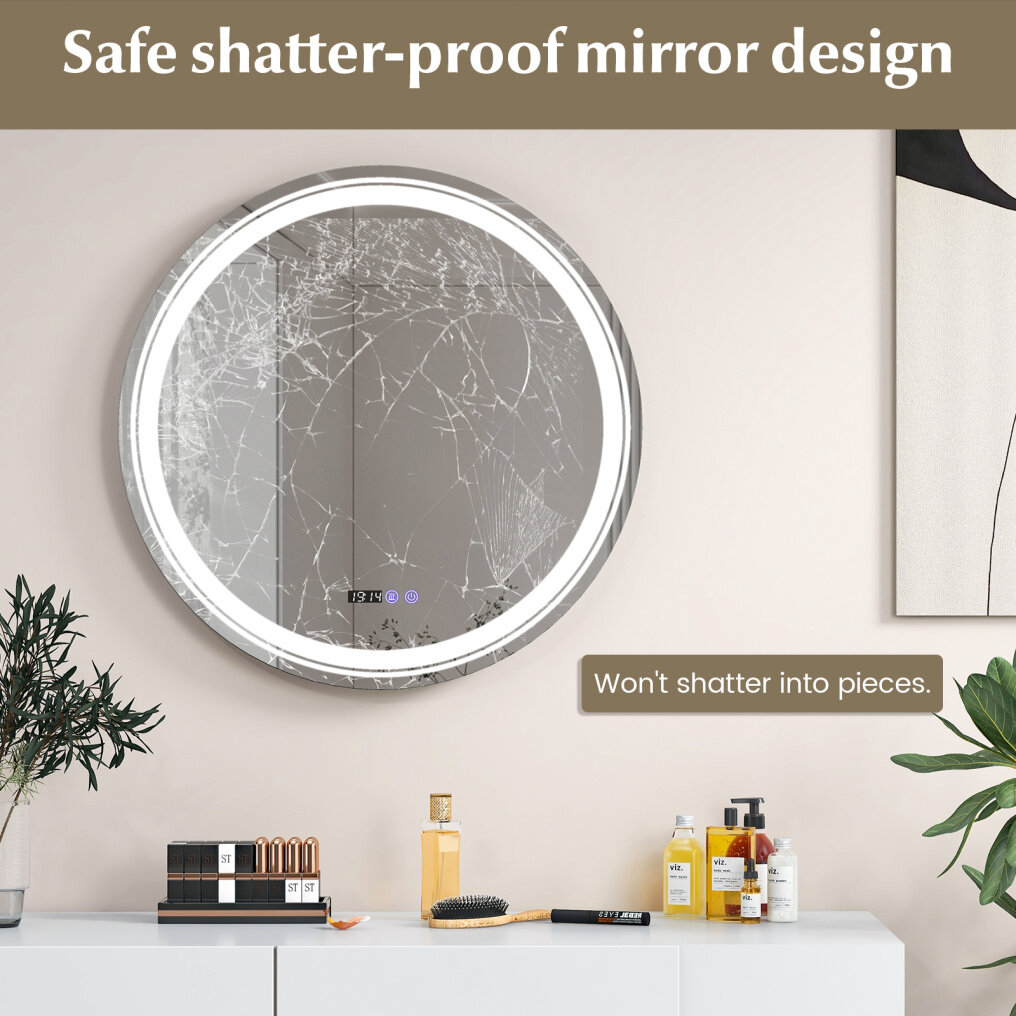 ● Safe Shatter-Proof Mirror Design: Designed with safety in mind, our premium bathroom mirror features a shatter-proof firm on the back, ensuring that even if the mirror breaks accidentally, it won't shatter into pieces, thus prioritizing your safety.