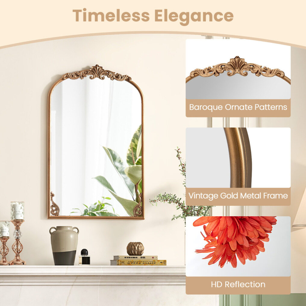 ● Elegant Vintage Aesthetic: This 30" x 20"/36" x 24"/38" x 26" ornate baroque arched mirror is designed to add a touch of elegance and grandeur to any room, and its intricate detailing and classic arched shape transform plain spaces into sophisticated environments.