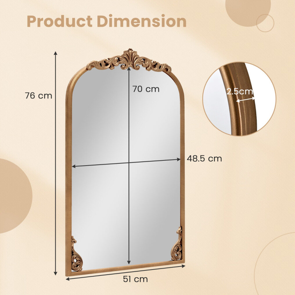 ● Timeless Wall Decoration: Perfectly suited for any decoration style, from traditional to contemporary, this vintage mirror acts as both a decorative and functional piece. Its timeless design infuses a sense of luxury in entryways, living rooms, bathrooms, etc.