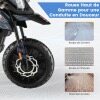 Kids can operate the motorcycle by pressing the start button and forward button. 2 motors allow kids to ride at a speed of 5.5-6km/h. When your kids ride, the cool headlight and built-in music provide endless fun. 2 big wheels and 2 training wheels provide a sturdy triangle structure for higher stability. The suspension allows for safe riding. In addition, the extended seat and additional footrest increase comfort during riding. Besides, it is equipped with a 12V battery for a riding time of 1 to 2 hours.