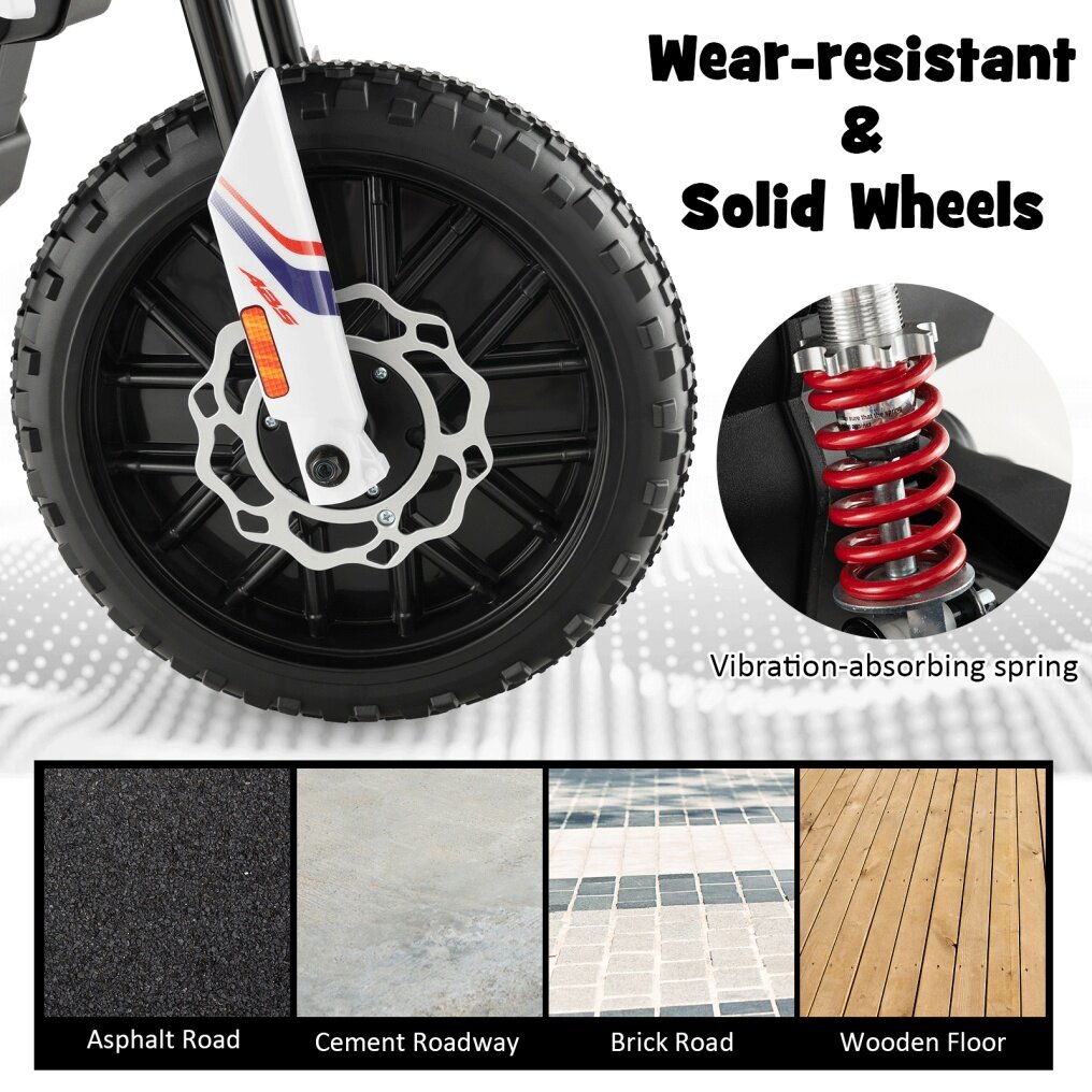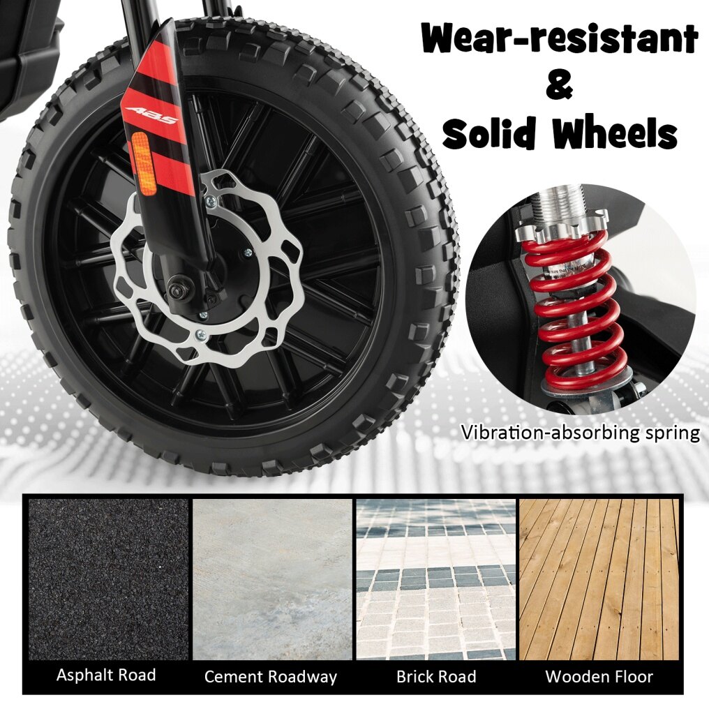 ● Dual Motors for High Performance: Equipped with dual powerful motors, this Aprilia licensed motorcycle can reach 3.4-3.7 mph speed, offering your little one an exciting driving experience. Besides, powered by 12V 7AH battery, this motorbike ensures 1-2 hours play time.