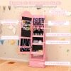 【Ample Storage Space】 The jewelry cabinet offers 27 earring slots, 6 necklace hooks, 64 ring slots, 3 bracelet bars, and 3 shelves for all your jewelry and cosmetics. Additionally, the bottom storage drawer provides extra space for clothes, books, toys, etc.