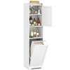 Thoughtful Details: With its magnetic latches and round metal handles, this laundry cabinet combines accessibility with a touch of style. Its easy-to-clean surface is designed to resist stains and scratches, ensuring durability and easy maintenance.