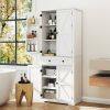 Modern style for versatile use: The sleek design of this tall storage cabinet fits into various rooms such as dining rooms, living rooms, and bathrooms. Its tall structure and modern look add both functional storage space and stylish accents to your interior.