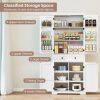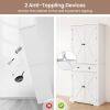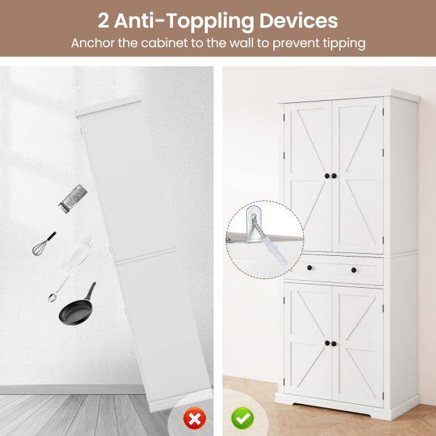 Enhanced safety features: Equipped with two anti-tip devices, this kitchen storage cabinet can be securely attached to the wall to minimize the risk of tipping over in busy homes. Additionally, built-in safety rails prevent stored items from falling and provide extra stability and security.