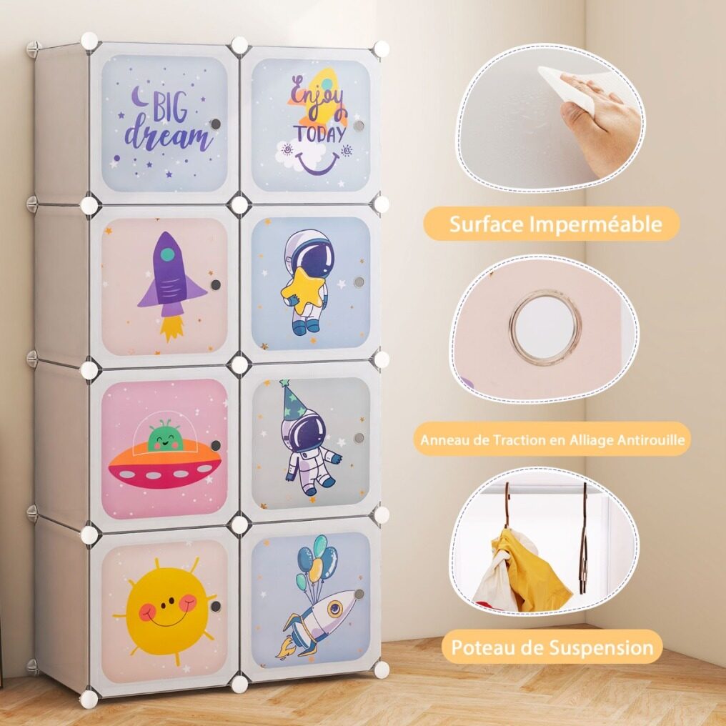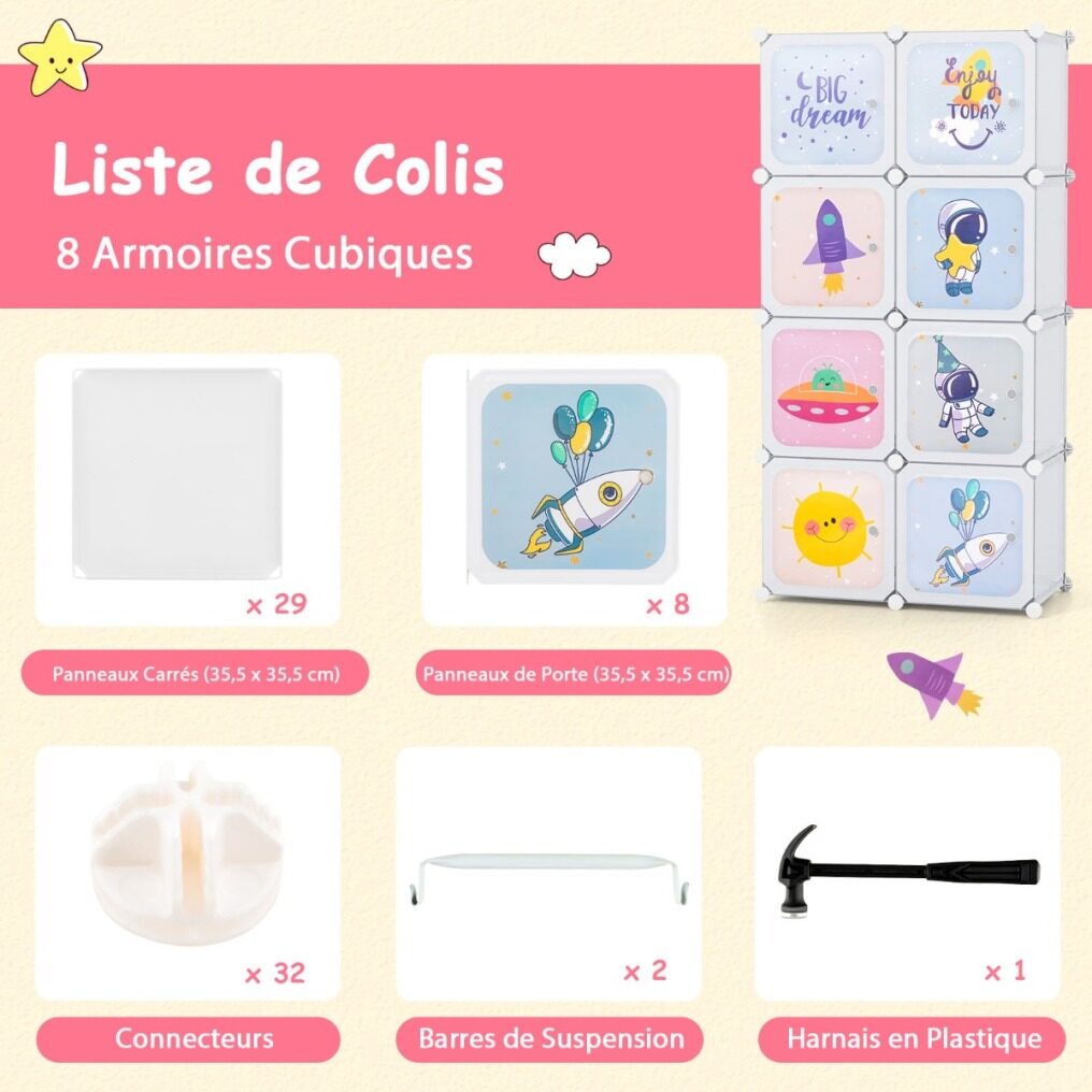 【Enjoy a Clutter-Free Nursery】With 8 spacious storage cubes and a convenient hanging bar, your kids will have plenty of room to keep their essentials organized, such as clothes, shoes, toys, and other miscellaneous items. Plus, each cube is equipped with a door, ensuring clutter stays out of sight.