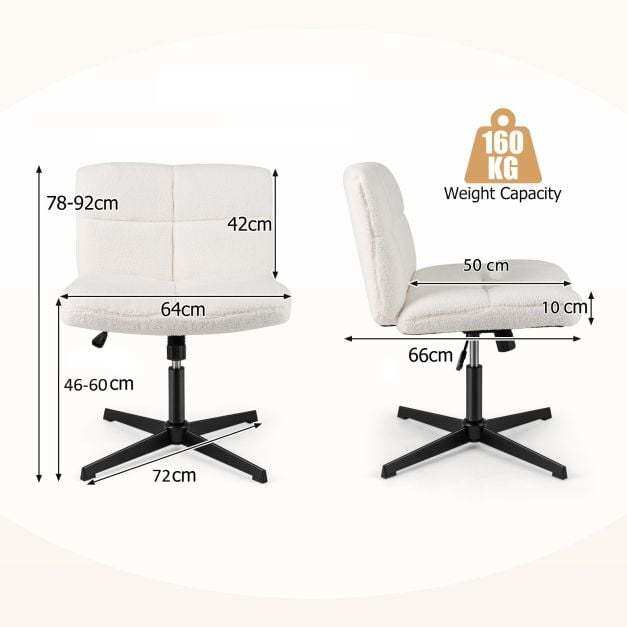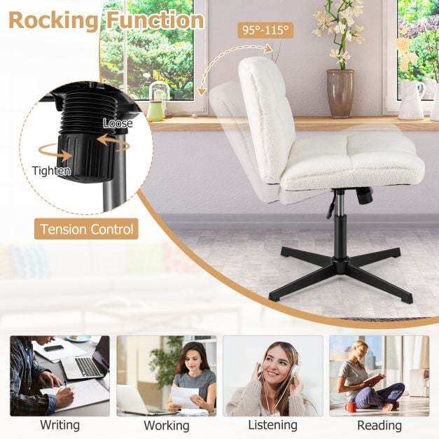 ● Multifunctional Armless Chair: The seat height can be adjusted from 17"-22.5", while the 95°-115° rocking motion allows you to enjoy a leisure time. Plus, the 360° rotation design helps you find your ideal sitting position effortlessly.